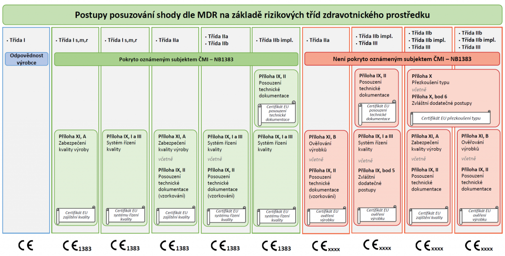 - Příloha XI, část A MDR – Posouzení shody založené na ověřování shody výrobku – Zabezpečování kvality výroby (pouze pro rizikovou třídu Is, Im, Ir a IIa)