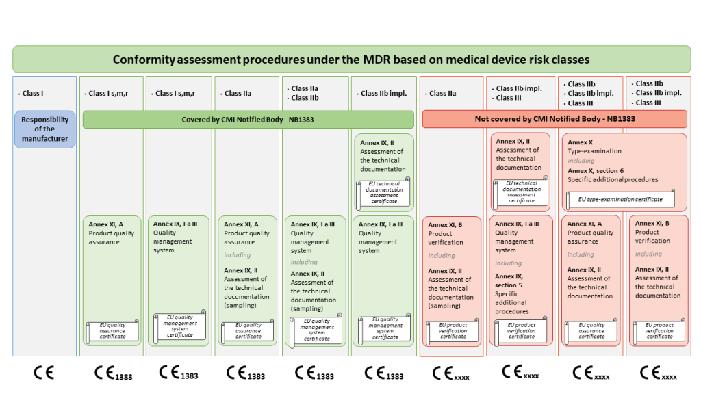 CMI is the designated notified body under the MDR for conformity assessment of medical devices of risk classes: