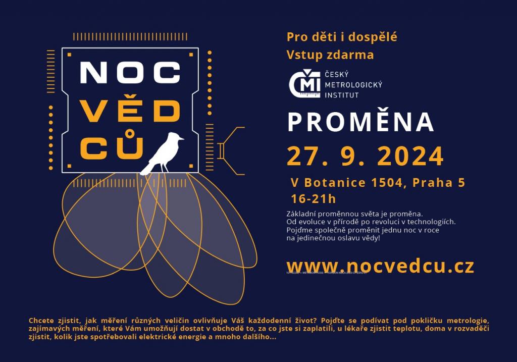 Český metrologický institut zve na prohlídku svých laboratoří, kde se návštěvníci seznámí s historickým vývojem měření a vážení. Program nabídne možnost vyzkoušet si přesné 3D mapování přinesených předmětů, výrobu vlastních slunečních hodin nebo si můžete nechat zkontrolovat své váhy a teploměry. Pro děti jsou připravené soutěže a workshopy, na jejichž konci obdrží každý účastník kalibrační list se svými výsledky.